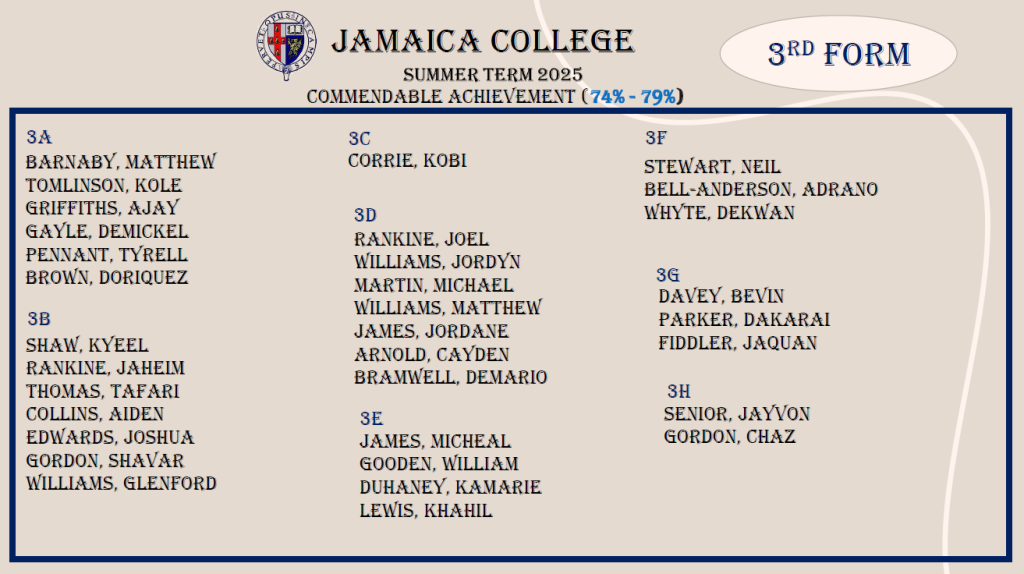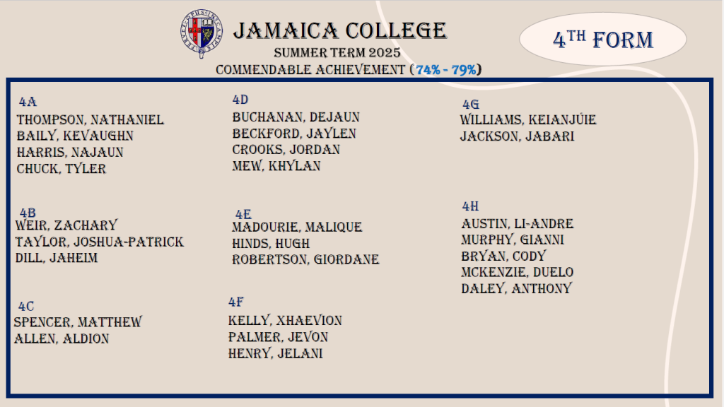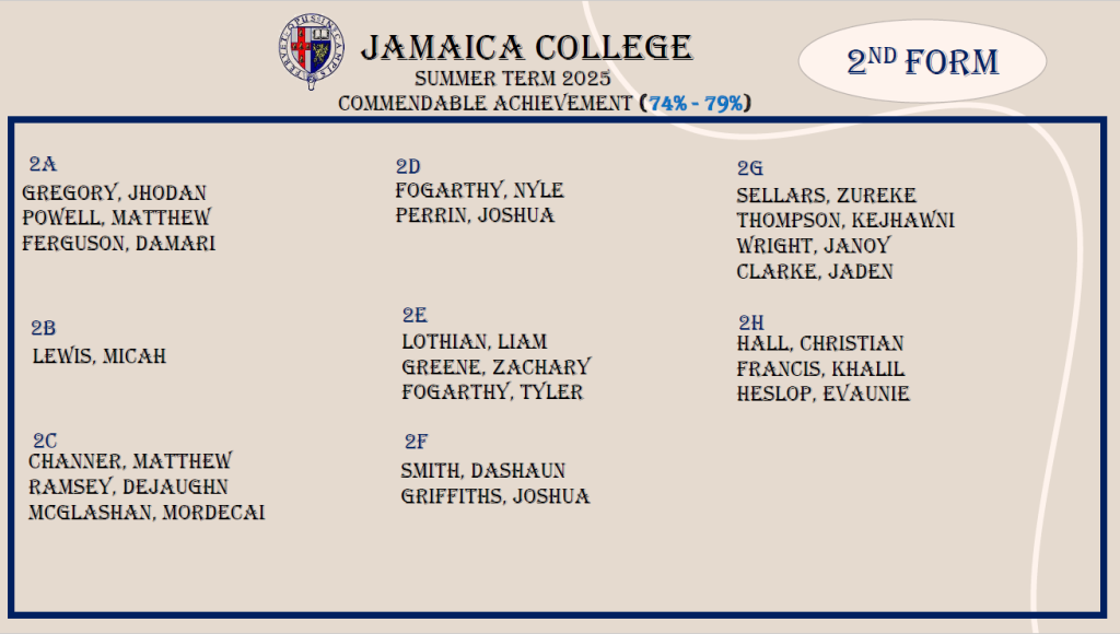 The National Education Inspectorate in its report stated “Jamaica College has a well developed broad-based curriculum which is regularly modified to cater for the needs of most students.” The report went on further to laud the efforts of the School Board, the Alumni and the Administrative team in restoring Jamaica College to its number one position.