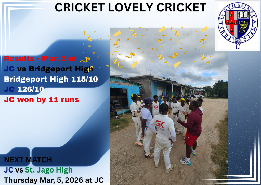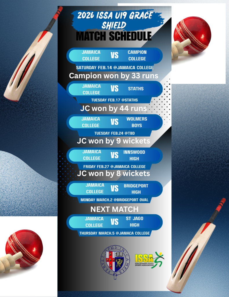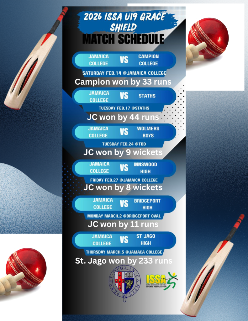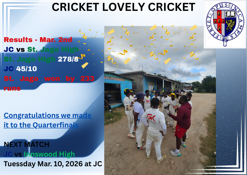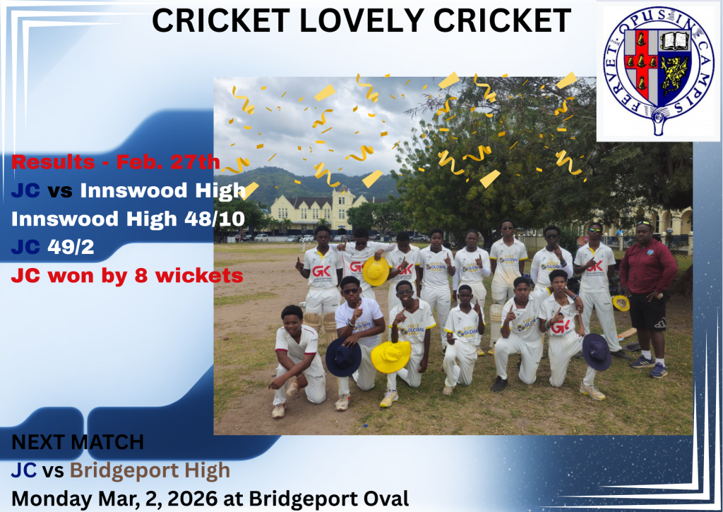 The under 16 cricket topped their preliminary round group and will be playing Bridgeport at JC on Friday (May 12) in their first quarter-final round game. They will play St. Georges at JC next Tuesday (May 16) then finish off on Friday (May 19) vs Wolmers Boys with the top two teams advancing to the Semifinal round.
